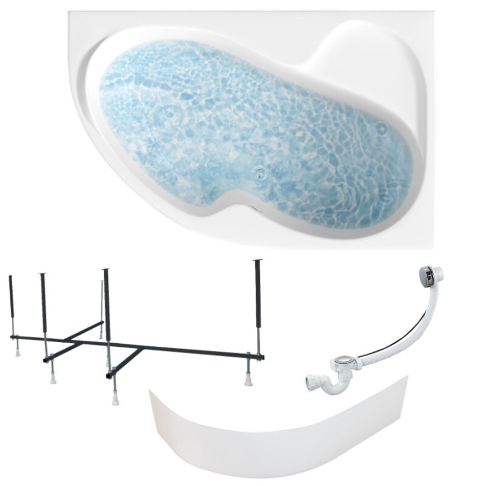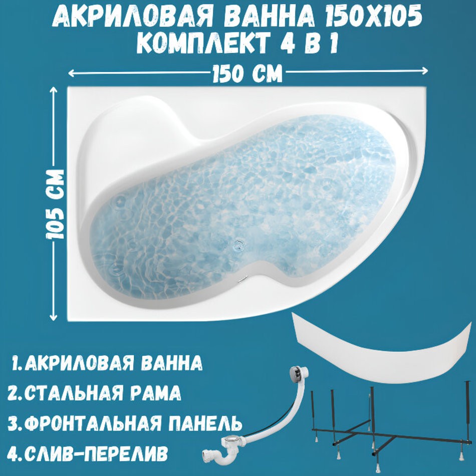 Ванна акриловая AURA 150х105 см, 100% сантехнический акрил, 1MARKA в наборе 4в1: Ванна акриловая, панель фронтальная, усиленная стальная рама, слив-перелив хром - это эффектная и функциональная модель, которая прекрасно подойдет для индивидуальных водных процедур и комфортного отдыха.