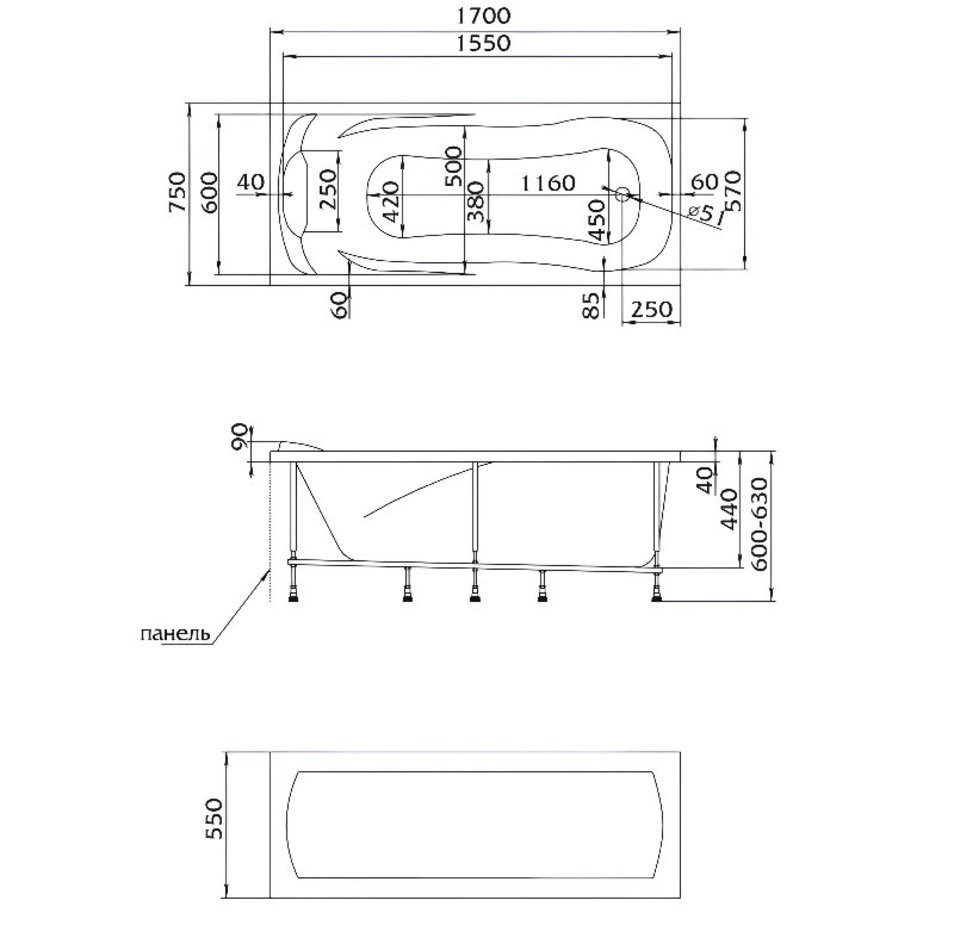 Ванна 1Marka CALYPSO изготовлена из 100% литьевого акрила, что обеспечивает долговечность и прочность изделия. Отдельно можно приобрести: Панель FLAT 170 Артикул - 02фл17.