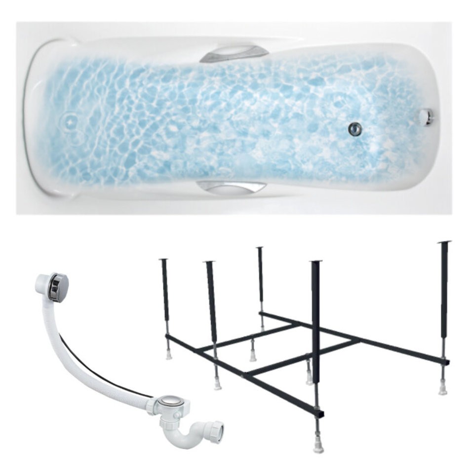 Ванна акриловая 170х75 см 1MARKA CALYPSO в наборе 3 в 1: Прямоугольная ванна, усиленный металлический каркас, слив-перелив хром 01каи1775кс2+ это прямоугольная ванна с овальной чашей, которая отличается увеличенной шириной по сравнению с другими моделями.