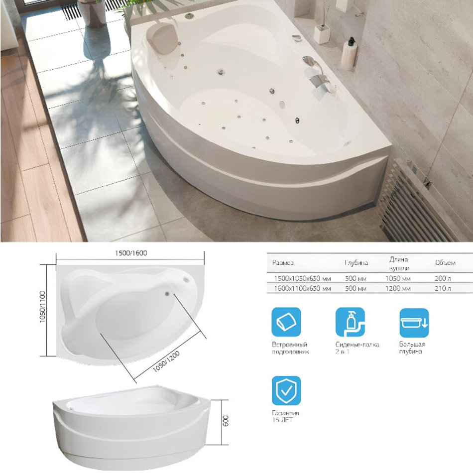 Особенностью данной модели является наличие встроенного подголовника, который гарантирует ортопедическую поддержку шейного отдела позвоночника-максимальный комфорт во время водных процедур и способствует здоровому сну.