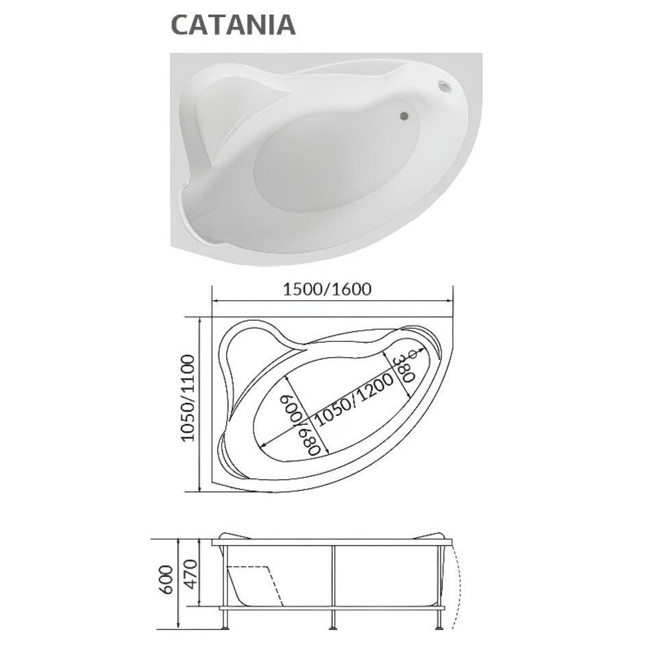 Ванна акриловая CATANIA 160х110 см, 100% сантехнический акрил, 1MARKA в наборе 3в1: Ванна акриловая, усиленная стальная рама, слив-перелив хром 01кт1610лкс2+-стильное и функциональное решение для вашей ванной комнаты.