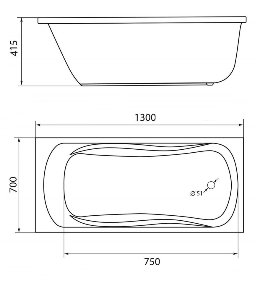 Ванна акриловая 1Marka Classic 01кл1370 А 130 x 70 см, белая
