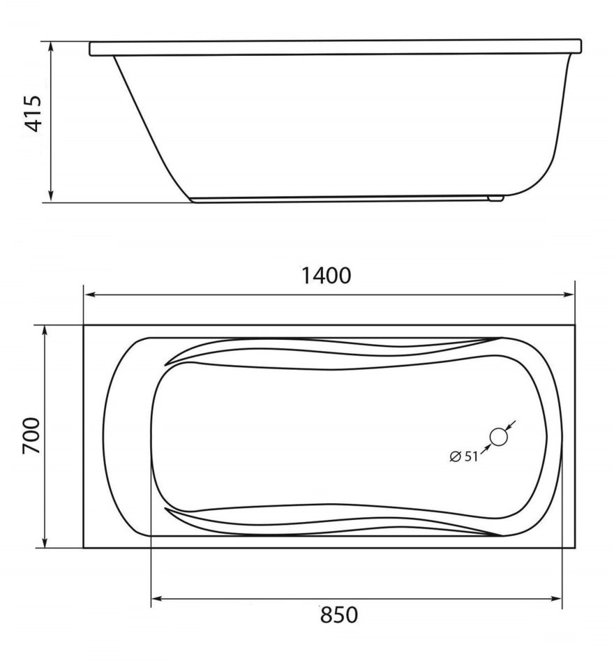 Ванна акриловая 1Marka Classic 01кл1470 А 140 x 70 см, белая