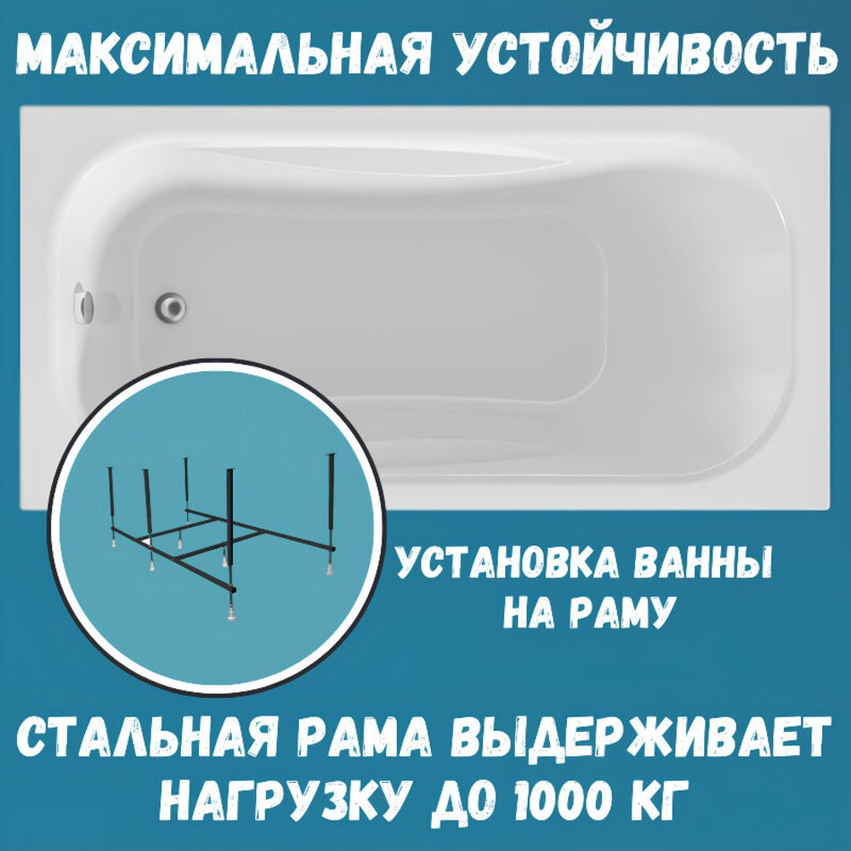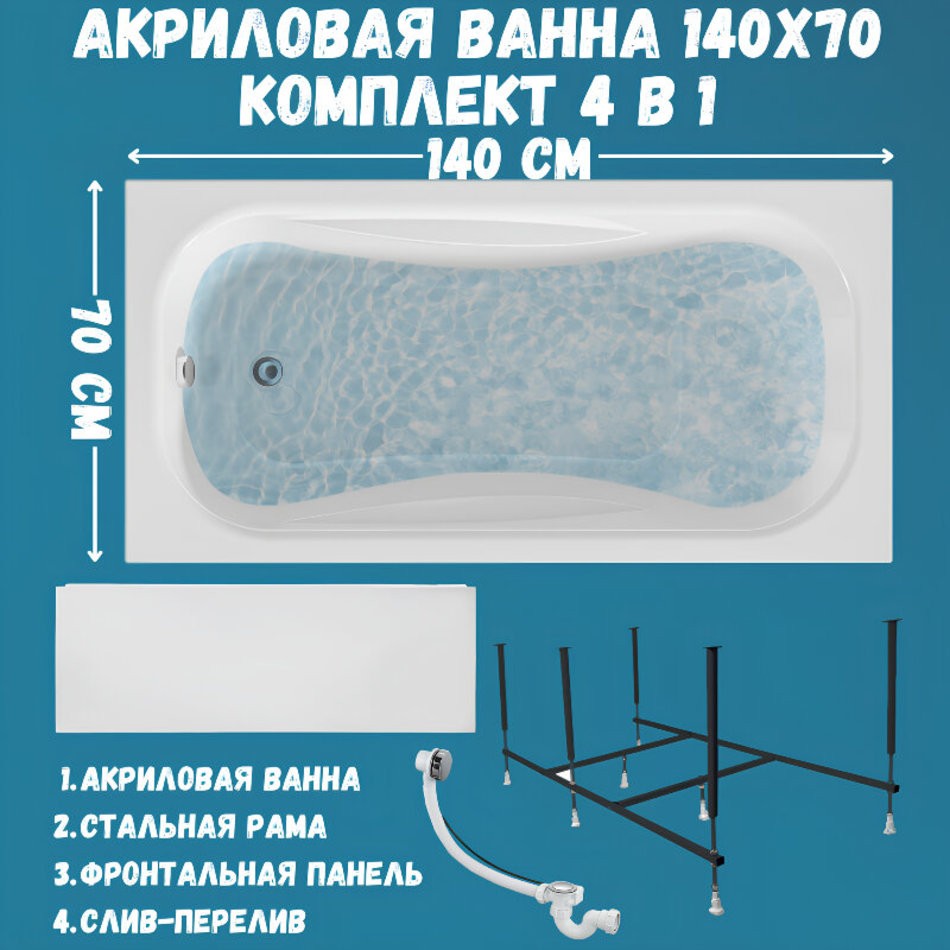 Ванна акриловая 140х70 см 1MARKA CLASSIC в наборе 4 в 1: Прямоугольная ванна, фронтальная панель, усиленный металлический каркас, слив-перелив хром 01кл1470Акп-благодаря широкому размерному ряду от 120 до 170 см подходит для размещения в любой ванной комнате.