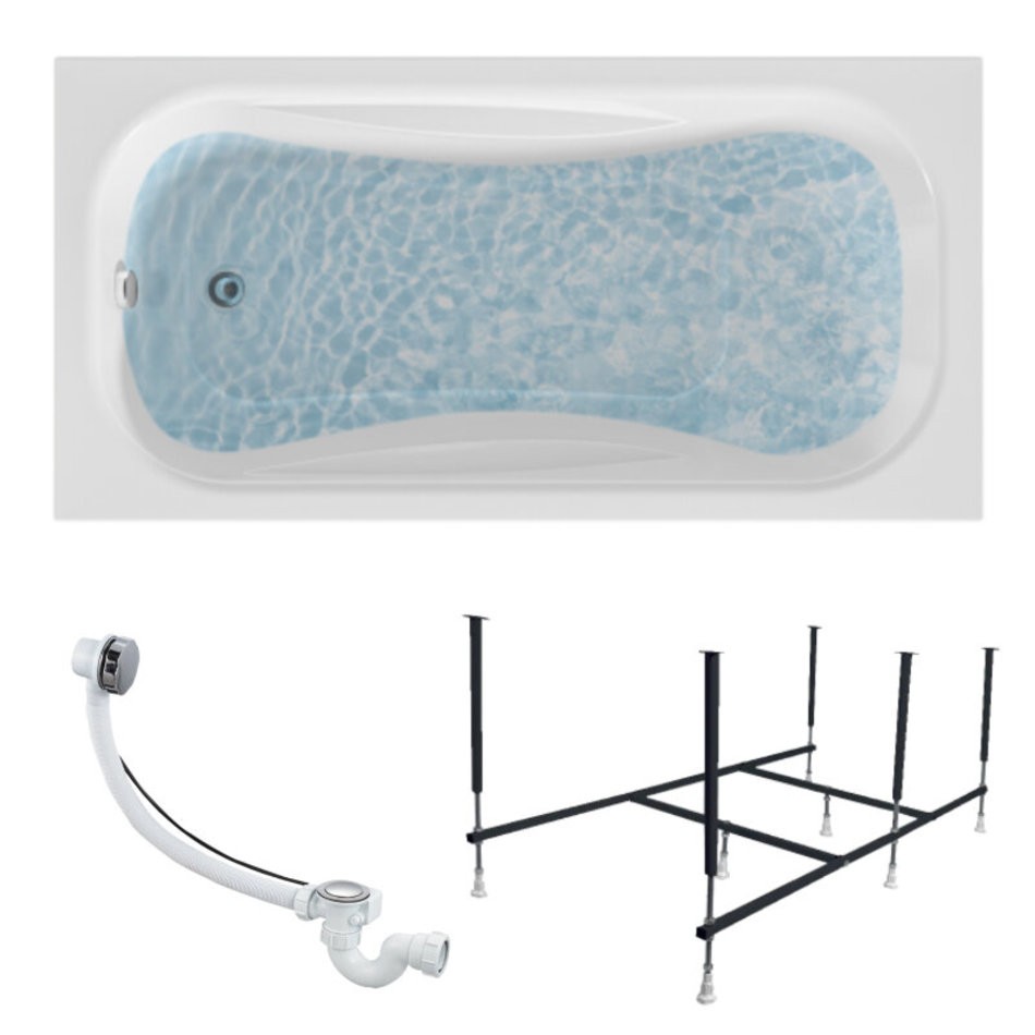 Ванна акриловая 140х70 см 1MARKA CLASSIC в наборе 3 в 1: Прямоугольная ванна, усиленный металлический каркас, слив-перелив хром 01кл1470Акс2+-благодаря широкому размерному ряду от 120 до 170 см подходит для размещения в любой ванной комнате.