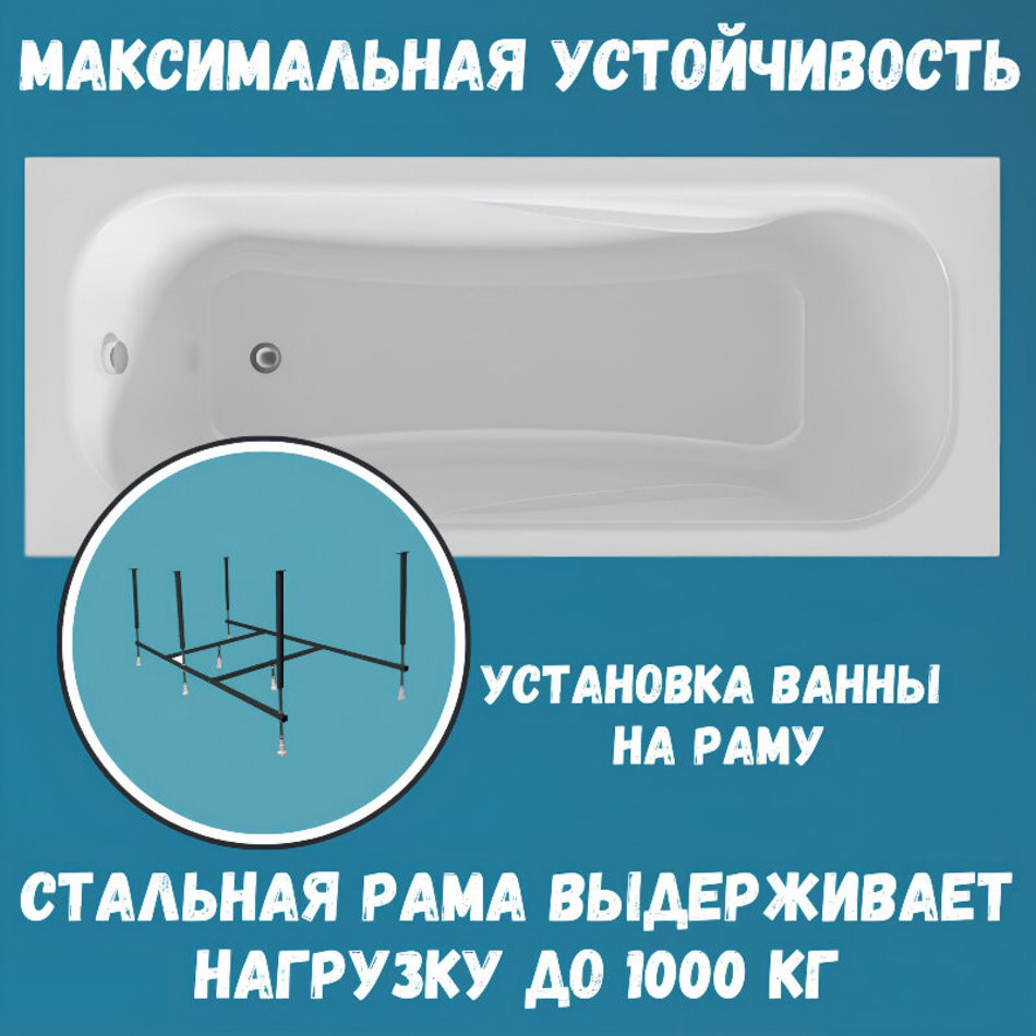 Ванна акриловая 160х70 см 1MARKA CLASSIC в наборе 3 в 1: Прямоугольная ванна, усиленный металлический каркас, слив-перелив хром 01кл1670Акс2+-благодаря широкому размерному ряду от 120 до 170 см подходит для размещения в любой ванной комнате.