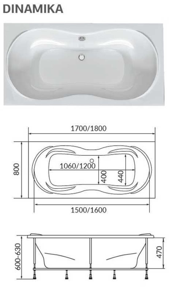 Классическая прямоугольная форма акриловой ванны Dinamika позволяет ей вписываться в любой интерьер. У этой ванны с гидромассажем есть подголовники с обеих сторон, зеркальная форма чаши и слив-перелив, расположенный по длинному борту ванны, что делает ее пространство еще более эргономичным. Размеры акриловой ванны Динамика - 180x80x63 см.
