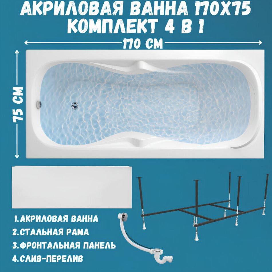 Ванна ""DIPSA""170*75 Комплект Премиум - это воплощение комфорта и стиля в вашей ванной комнате. Прямоугольная форма ванны обеспечивает удобство и комфорт во время водных процедур. Габариты 170x75 см позволяют разместить ее даже в небольших ванных комнатах.