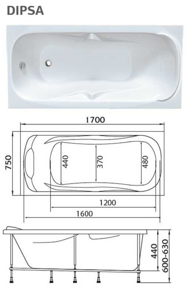 Прямоугольная акриловая ванна Dipsa с габаритами 170*75см отлично подойдет всем любителям водных процедур: в ней вы сможете комфортабельно разместиться. Ширина и длина ванны делают ее очень вместительной. Эргономичные подлокотники для рук и приподнятая спинка для шеи и головы позволят вам по-настоящему расслабиться и отдохнуть.