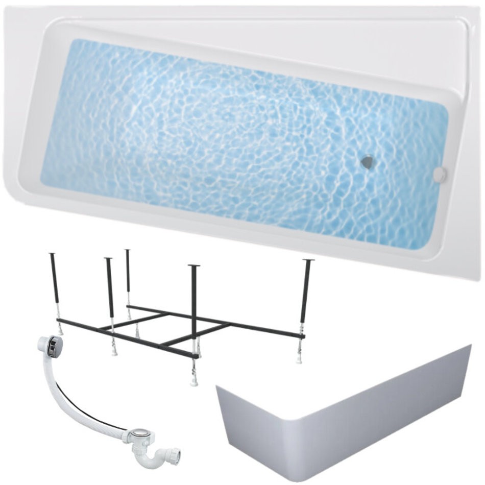 Ванна акриловая DIRECT 170х100 см, 100% сантехнический акрил, 1MARKA в наборе 4в1: Ванна акриловая, панель фронтальная, усиленная стальная рама, слив-перелив хром - это асимметричная модель, которая благодаря нестандартному положению купели превращается в полноценный уголок для комфортных ванных процедур.
