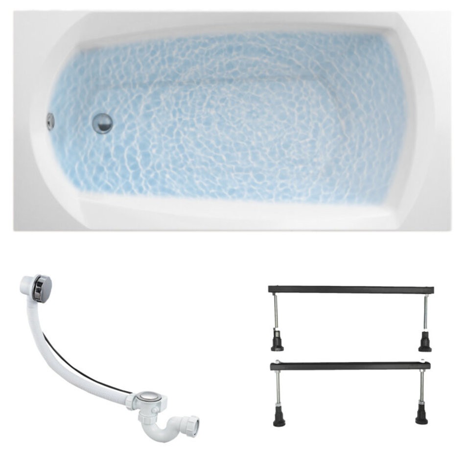 Ванна акриловая 150х70 см 1MARKA ELEGANCE в наборе 3 в 1: Прямоугольная ванна, металлические ножки, слив-перелив хром 01эл1570кс1- стильная и функциональная модель, которая станет украшением вашей ванной комнаты.