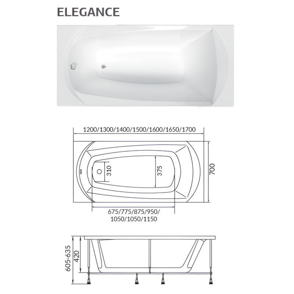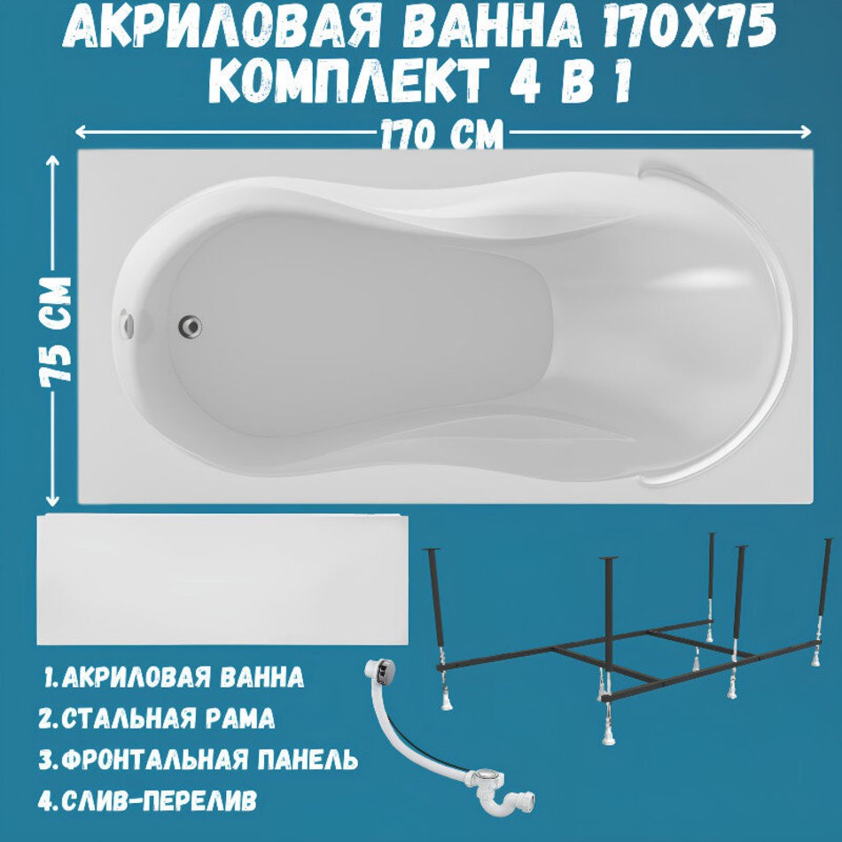Ванна акриловая 165х70 см 1MARKA ELEGANCE в наборе 3 в 1: Прямоугольная ванна, усиленный металлический каркас, слив-перелив хром 01эл16570кс2+- стильная и функциональная модель, которая станет украшением вашей ванной комнаты.