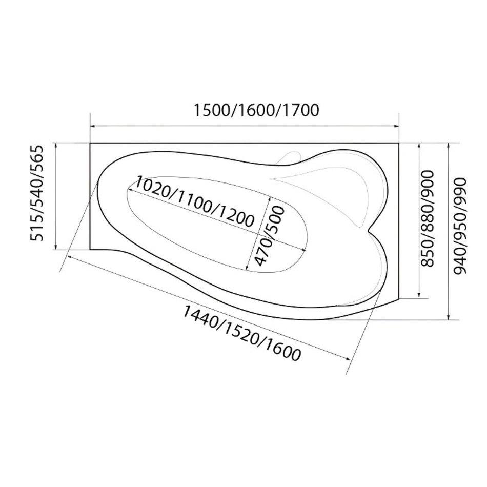 Ванна акриловая 1MarKa Gracia 01гр1695лкс2+/01гр1695пкс2+, 160 x 95 см, левая/правая, цвет белый
