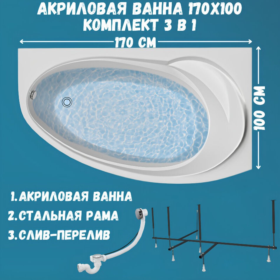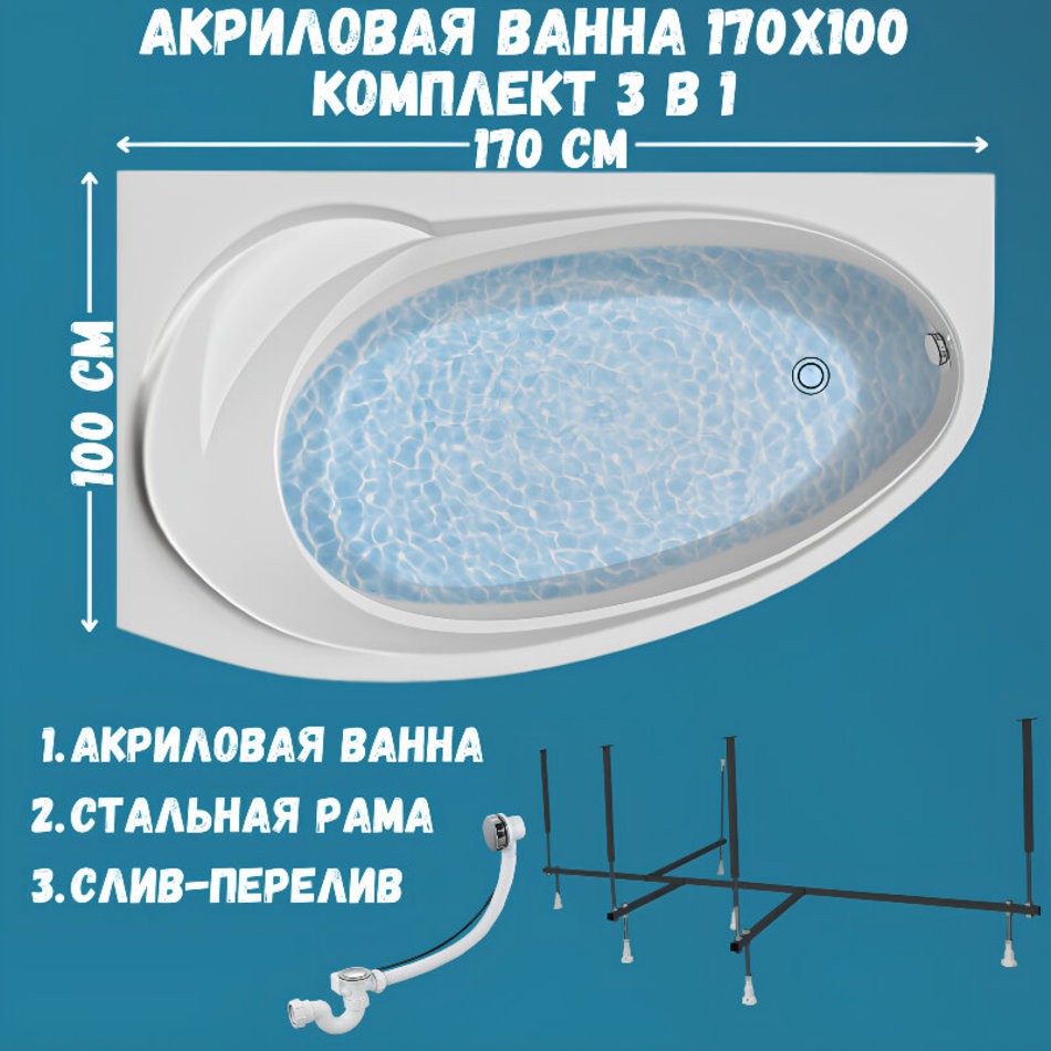 Ванна акриловая 1MarKa Julianna 01дж1710лкс2+/01дж1710пкс2+, 170 x 100 см, левая/правая, цвет белый