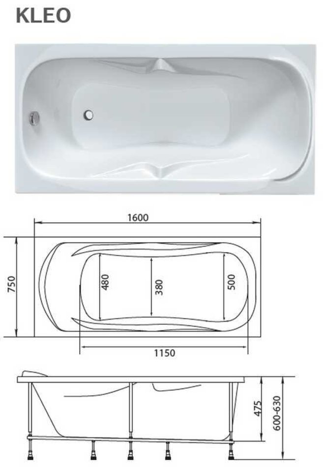 Ванна акриловая 1MarKa Kleo 01кл1675, 160 х 75 см, цвет белый