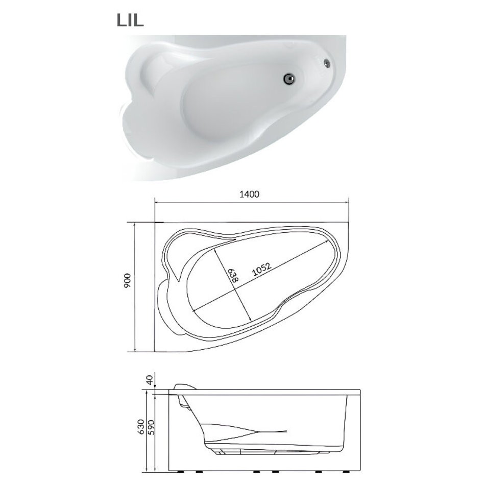 Ванна акриловая 1MarKa Lil 01лил1490лкп/01лил1490пкп, 140 x 90 см, левая/правая, цвет белый