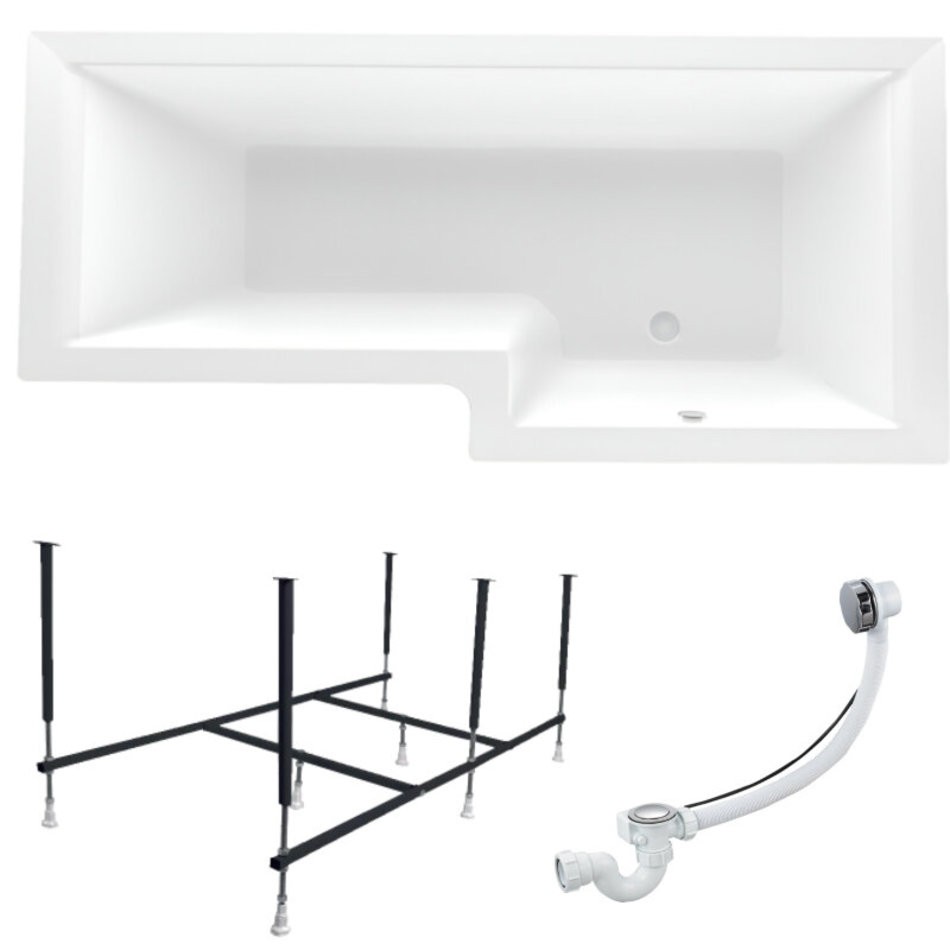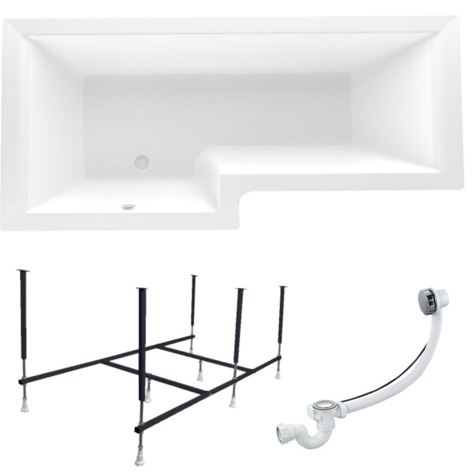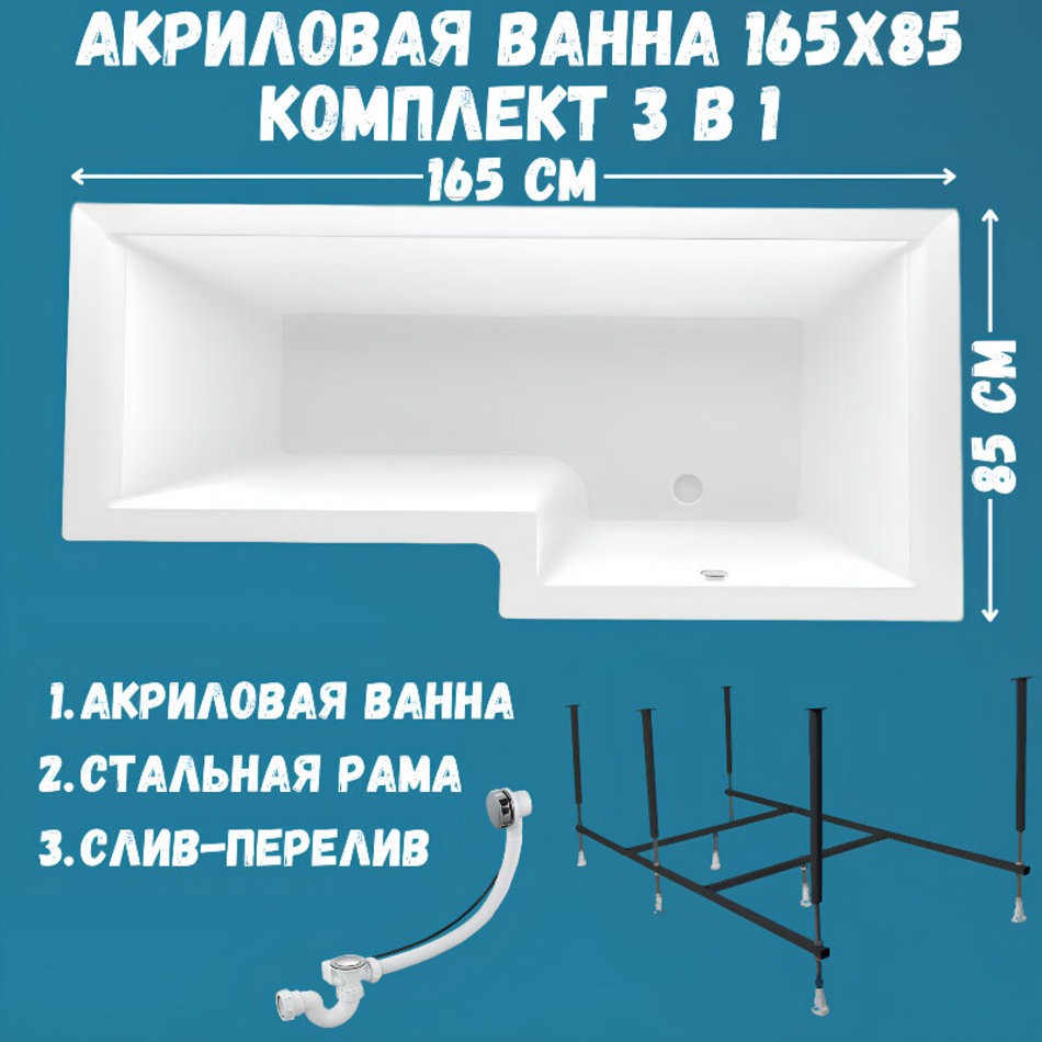 Ванна акриловая LINEA 165х85 см, 100% сантехнический акрил, 1MARKA в наборе 3в1: Ванна акриловая, усиленная стальная рама, слив-перелив хром -ассиметричная модель с оригинальным дизайном, которая станет незаменимым элементом вашей ванной комнаты..