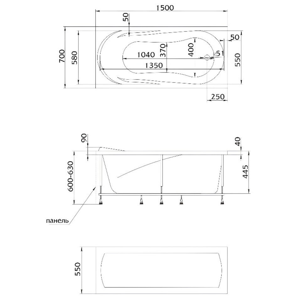 Важной особенностью является регулируемая высота ножек, что позволяет адаптировать ванну под любое основание. К данной ванне отдельно можно приобрести: Панель FLAT 150 Артикул - 02фл15.