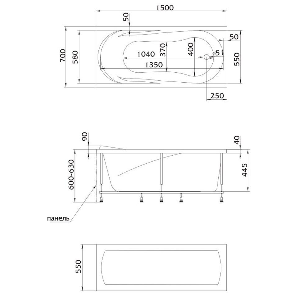 Ванна акриловая 1MarKa Medea, прямоугольная, 150 х 70 см, цвет белый, 01ме1570