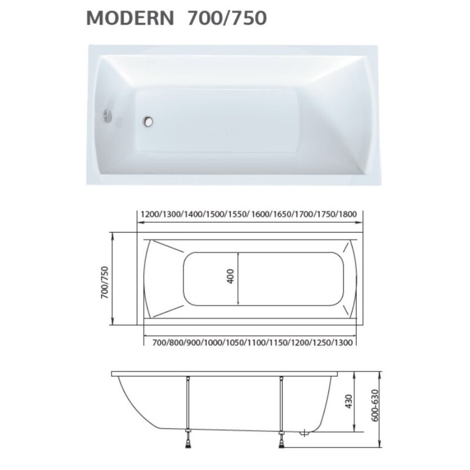 Панель для прямоугольной ванны «MODERN» приобретается отдельно. Подходящая модель: