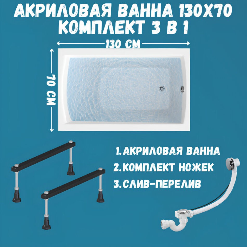 Ванна акриловая 1MarKa Modern 01мод1370кс1, 130 x 70 см, цвет белый