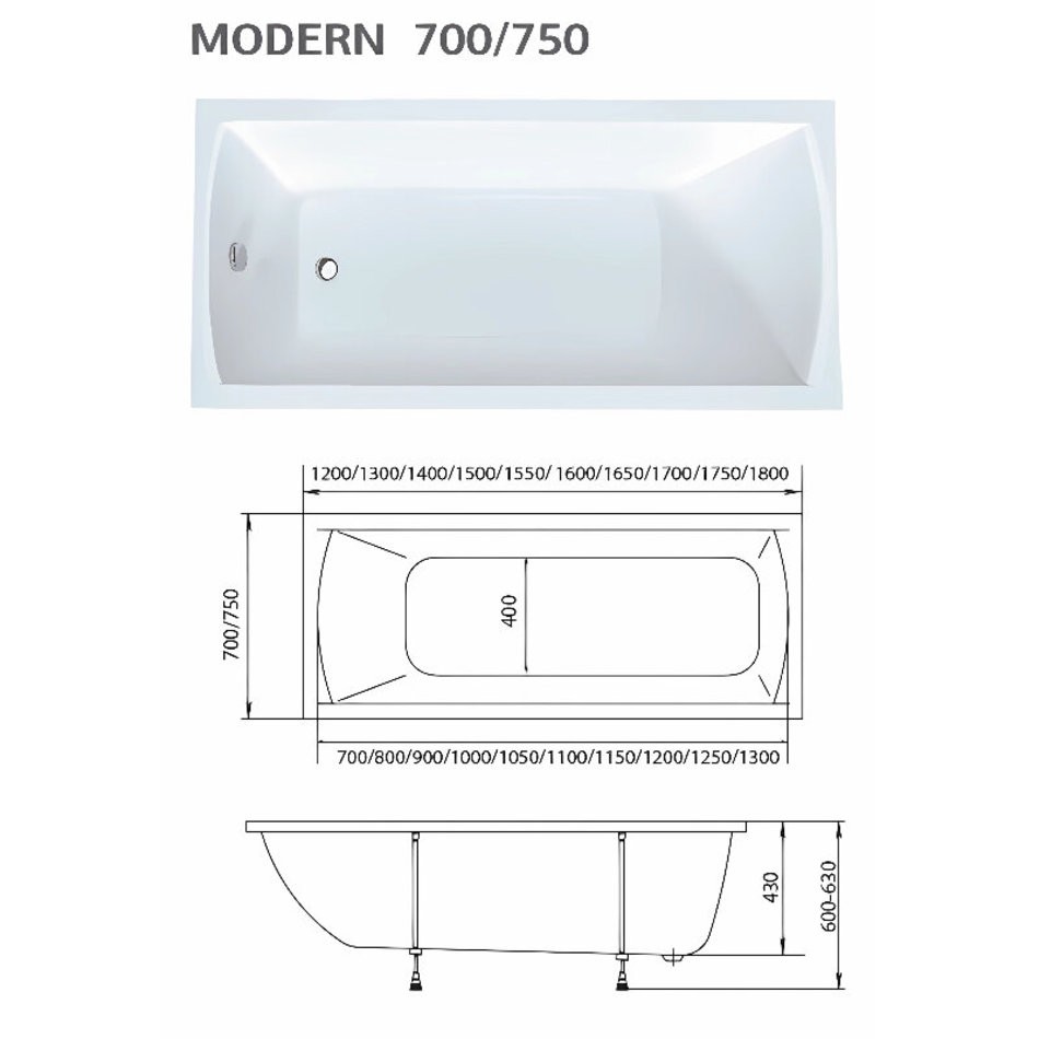Панель для прямоугольной ванны «MODERN» приобретается отдельно. Подходящая модель: