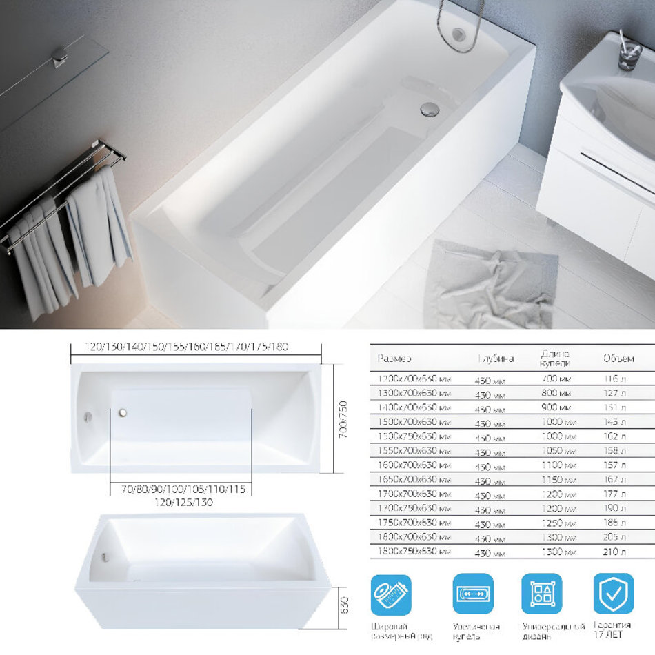 • Низкая теплопроводность акрила позволяет сохранять тепло – за полчаса набранная вода остынет только на 1 градус. Материал безопасен. Не обладает запахом. Не скользит.
