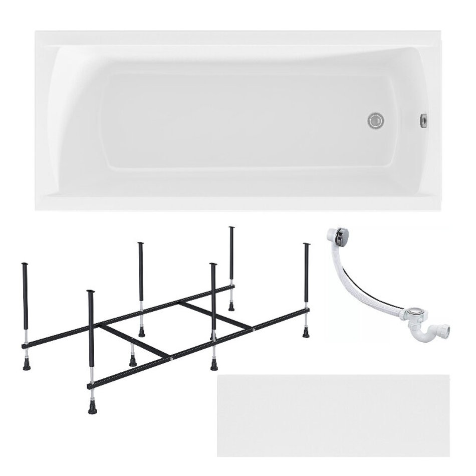 Симметричная акриловая ванна «MODERN» в комплекте с разборной рамой, сливом-переливом и панелью – готовое решение для ванной комнаты.