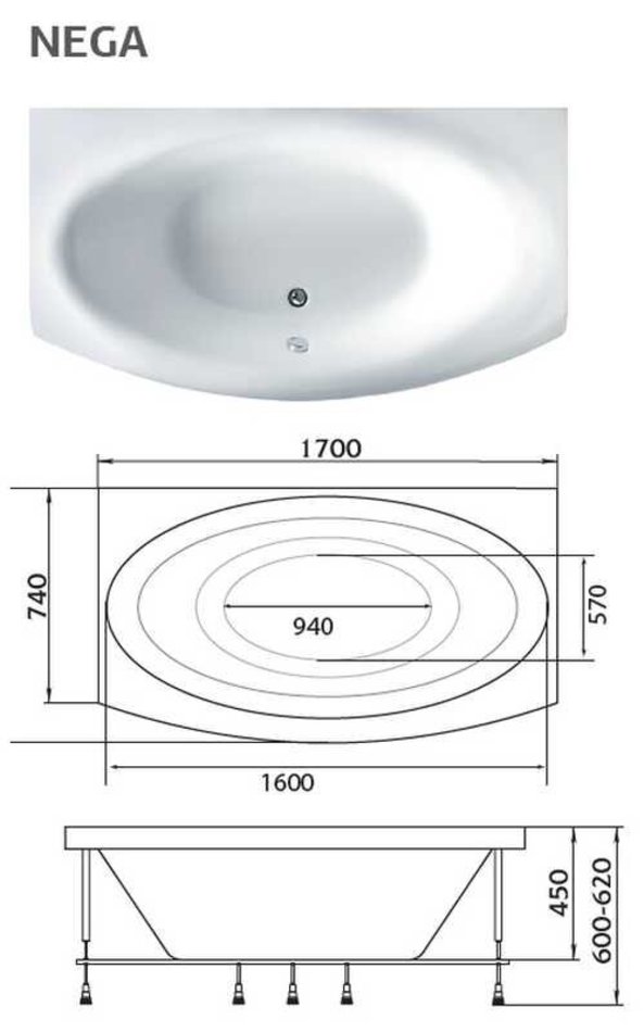 Ванна акриловая 1MarKa Nega 170 х 94 см, цвет белый, 01нег1795