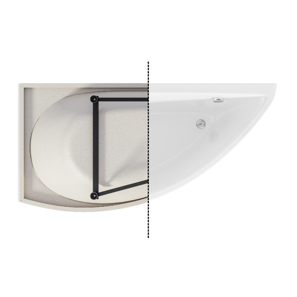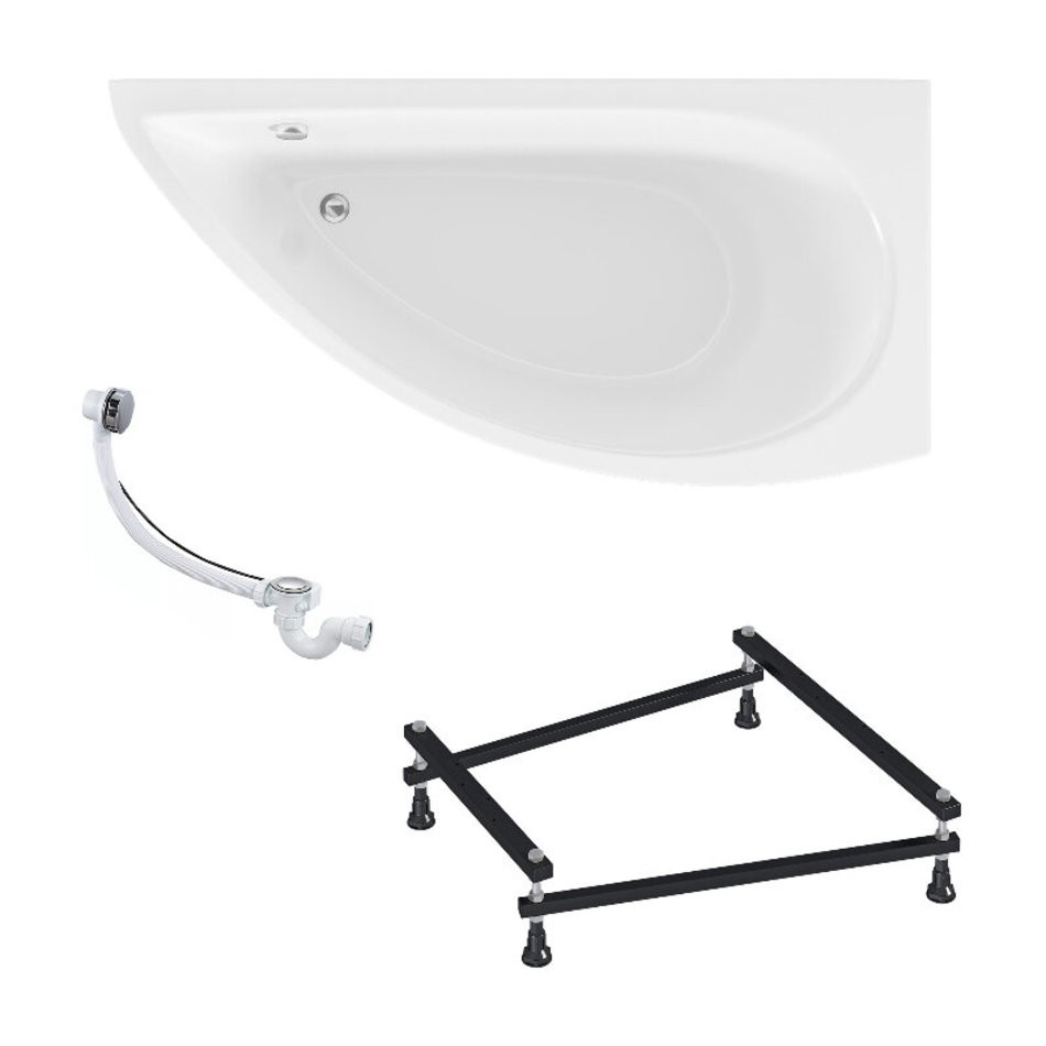 Комплект асимметричной акриловой ванны «PICCOLO» с разборной рамой, сливом-переливом – выгодное решение для ванной комнаты.