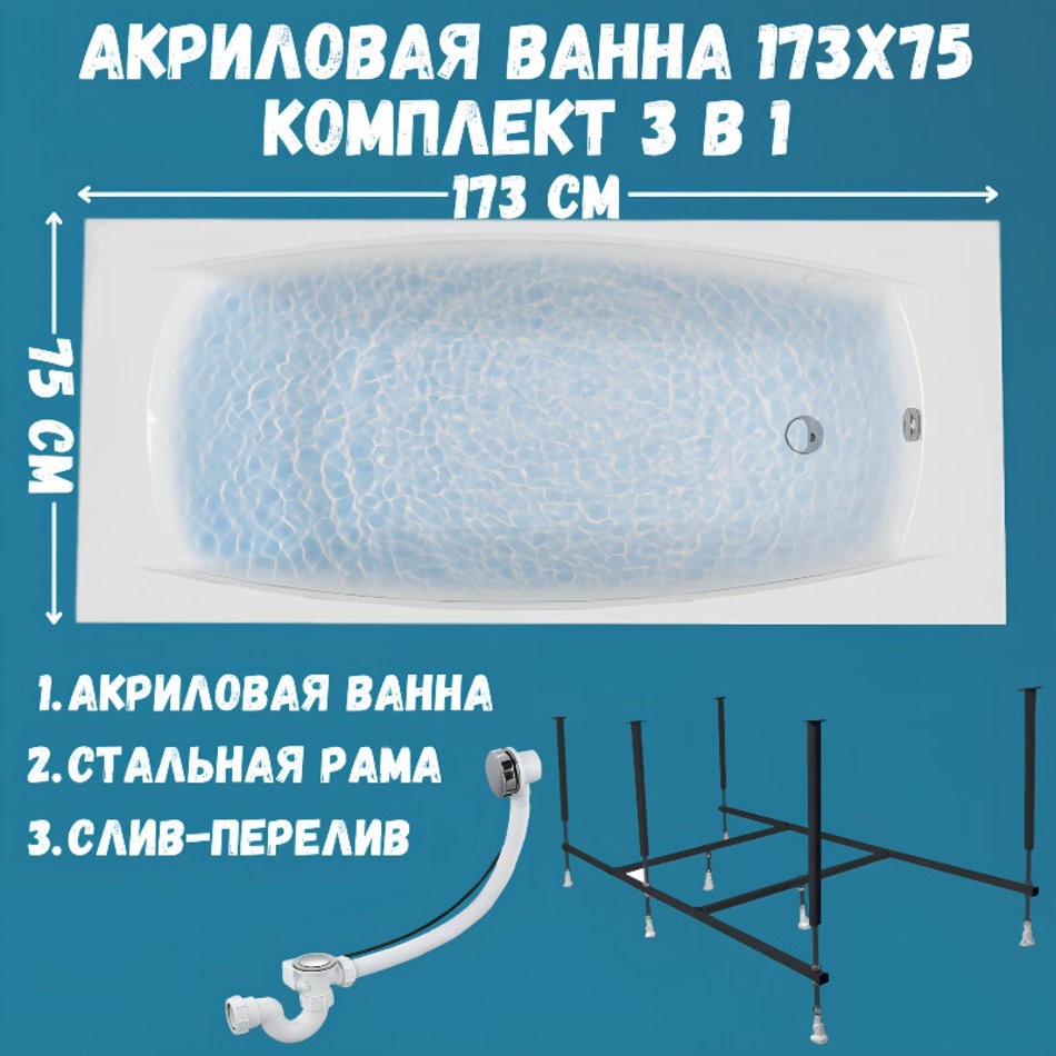 "Ванна акриловая 173х75 см 1MARKA PRAGMATIKA в наборе 3 в 1: Прямоугольная ванна, усиленный металлический каркас, слив-перелив хром 01пр17375кс2+- это гармоничное сочетание комфорта и расслабления в вашей ванной комнате.