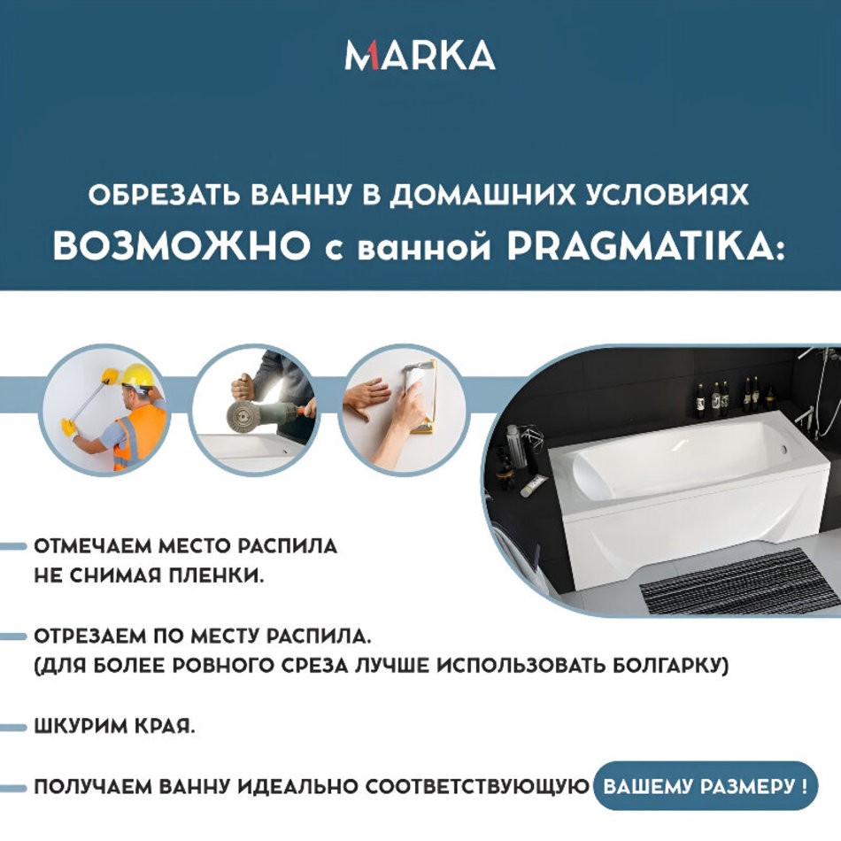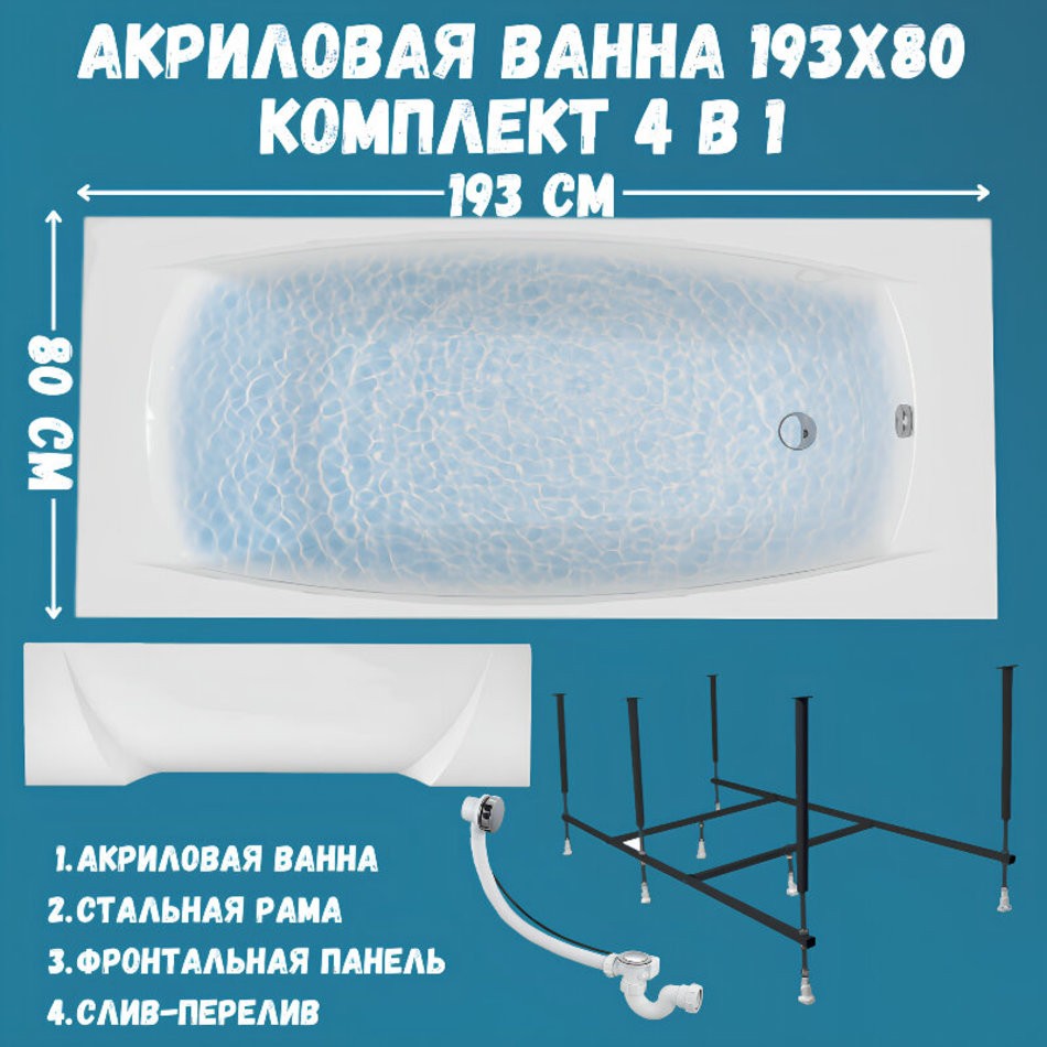 Ванна акриловая 193х80 см 1MARKA PRAGMATIKA в наборе 4 в 1: Прямоугольная ванна, фронтальная панель, усиленный металлический каркас, слив-перелив хром 01пр19380кп- это уникальное решение для тех, кто ищет нестандартный и функциональный вариант для своей ванной комнаты.