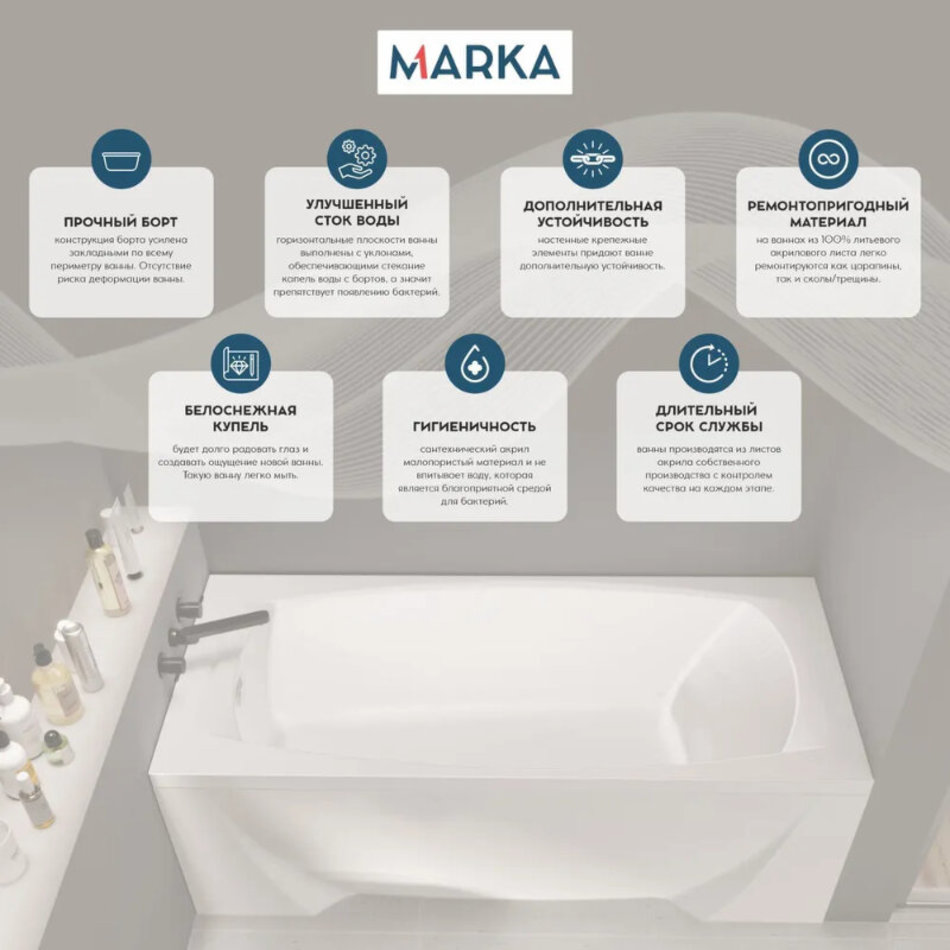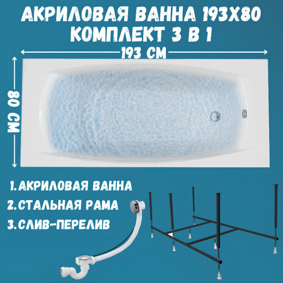 Ванна акриловая Marka One PRAGMATIKA 193-170x80 Прямоугольная Белая Отрезная в наборе 3 в 1: ванна, каркас, слив-перелив 01пр19380кс2+ - это уникальное решение для тех, кто ищет нестандартный и функциональный вариант для своей ванной комнаты.