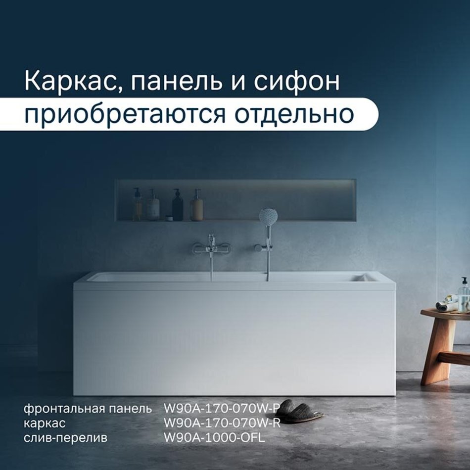 Дополнительные аксессуары для ванн Gem: фронтальная панель W90A-170-070W-P цельносварной каркас W90A-170-070W-R многофункциональный контейнер W90A-070-070W-C слив-перелив W90A-000-OFI - приобретаются отдельно.