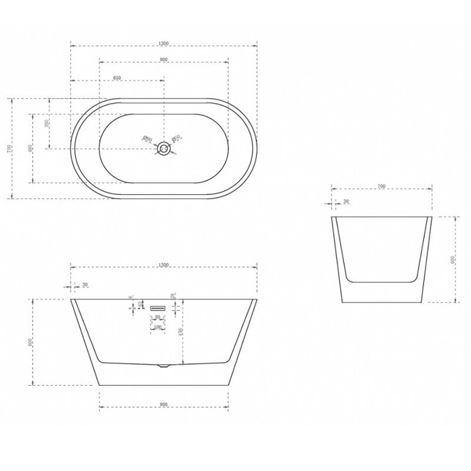 Ванна акриловая Abber 130 х 70 x 60 см отдельностоящая, белая, AB9203-1.3