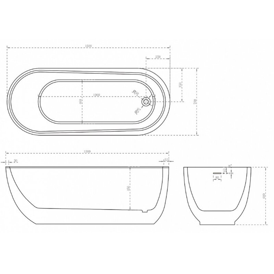 Ванна акриловая Abber 150 х 70 x 60 см, отдельностоящая, белая, AB9341-1.5