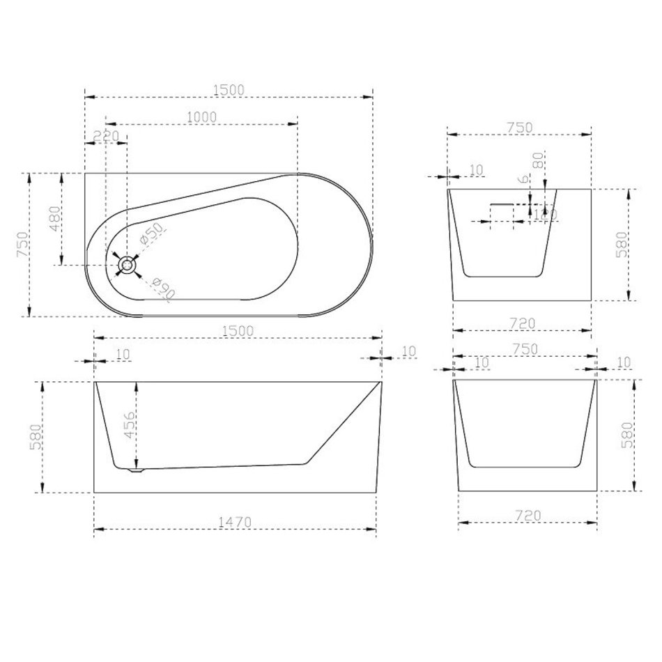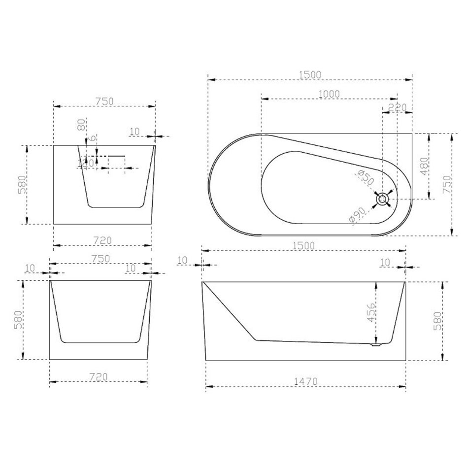 Ванна акриловая Abber 150 х 75 x 58 см, белая, AB9496-1.5 L/R