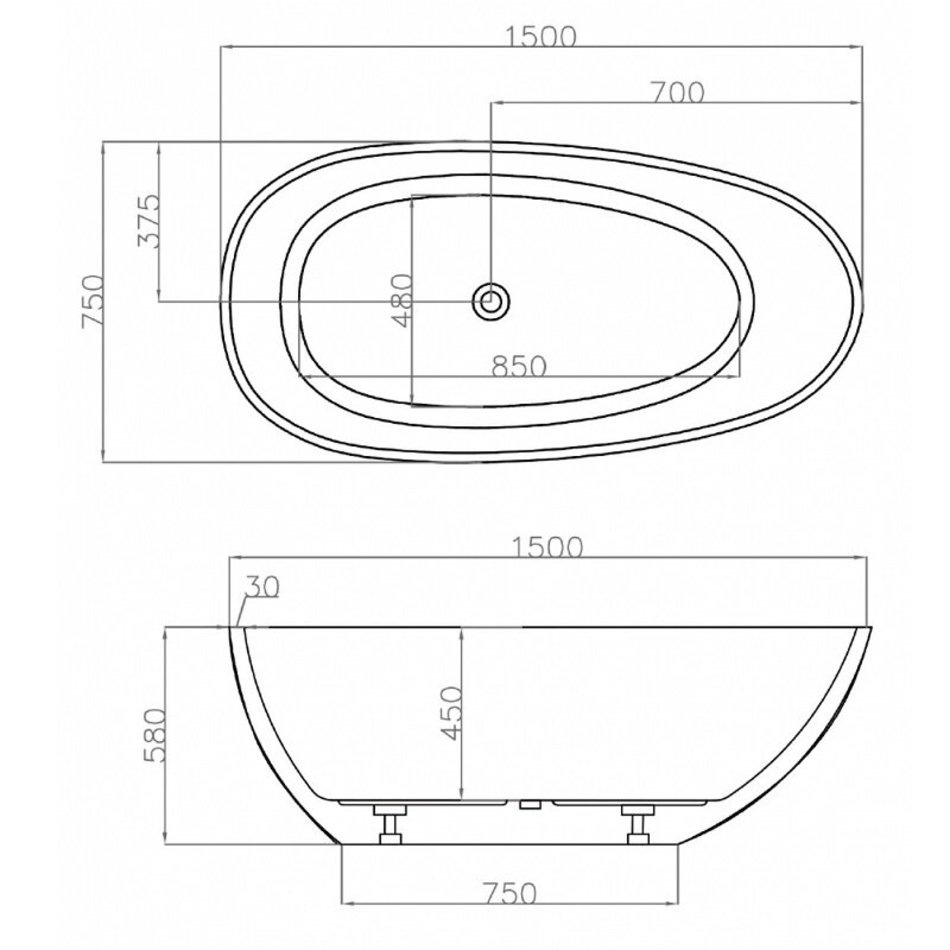 Ванна акриловая Abber 150 х 75 x 58 см, отдельностоящая, белая, AB9356-1.5
