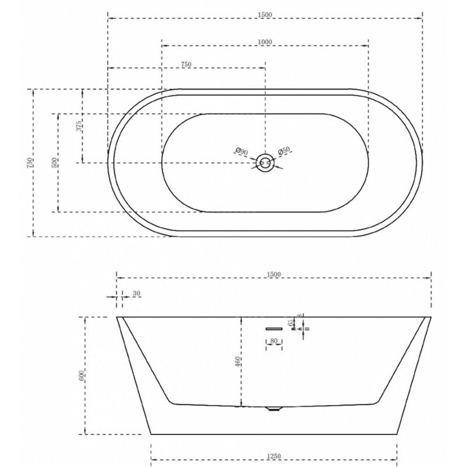 Ванна акриловая Abber 150 х 75 x 60 см, отдельностоящая, белая, AB9320-1.5