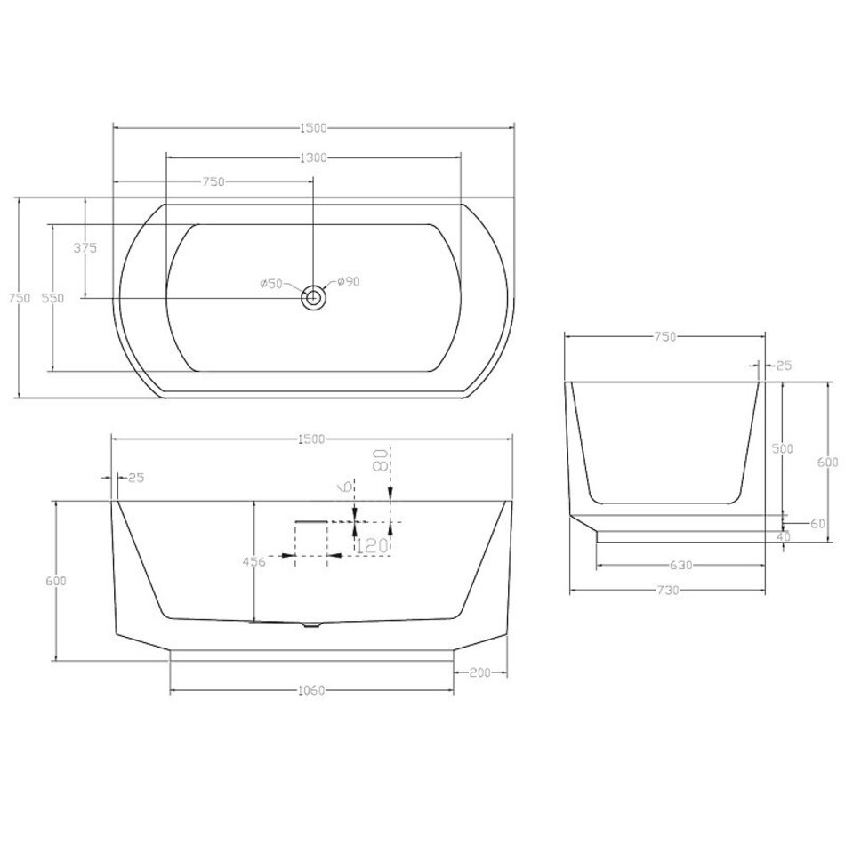 Ванна акриловая Abber 150 х 75 x 60 см пристенная, белая, AB9488-1.5