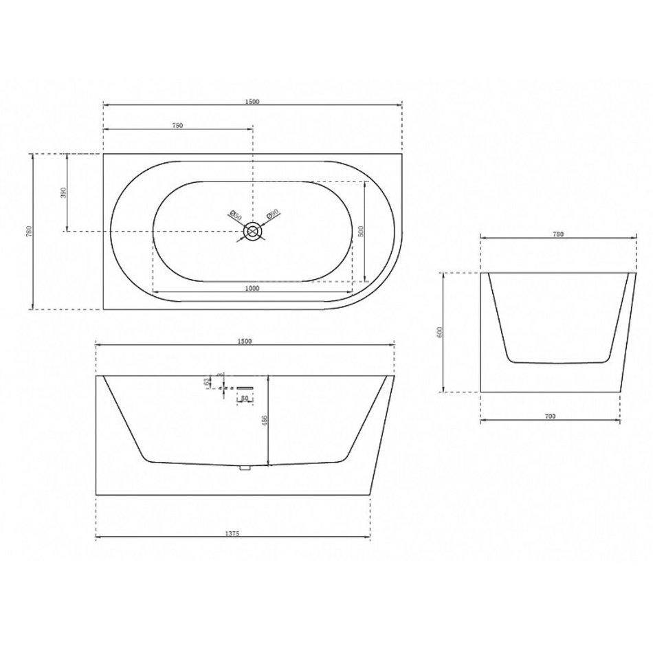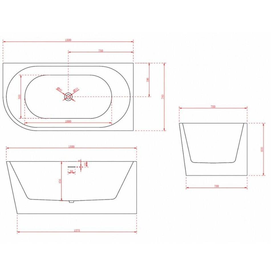 Ванна акриловая Abber 150 х 78 x 60 см пристенная, белая, AB9257-1.5 L/R