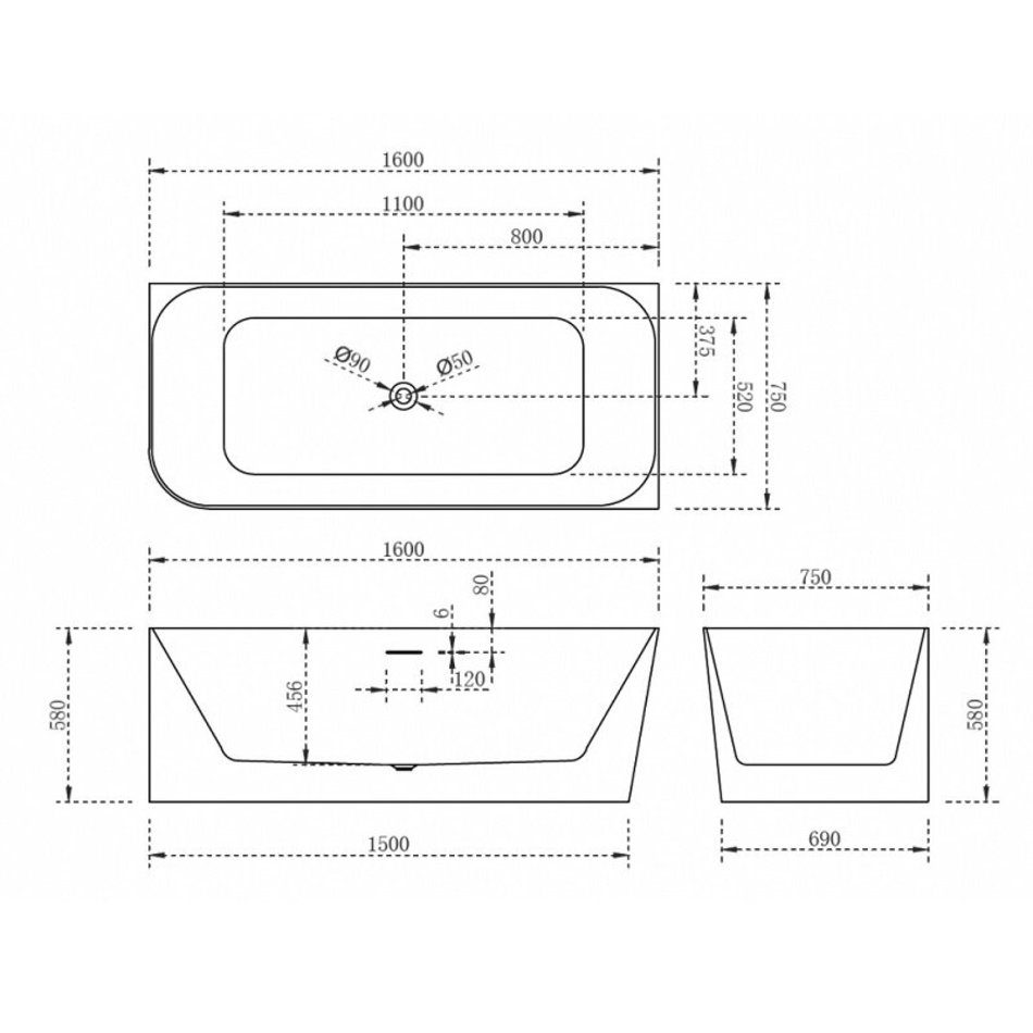 - Ванна акриловая встраиваемая/приставная