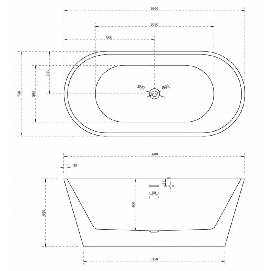 Ванна акриловая Abber 160 х 75 x 60 см, отдельностоящая, белая, AB9320-1.6