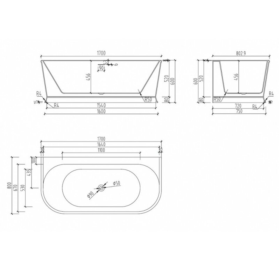 Ванна акриловая Abber 170 х 80 x 60 см, отдельностоящая, белая, AB9276