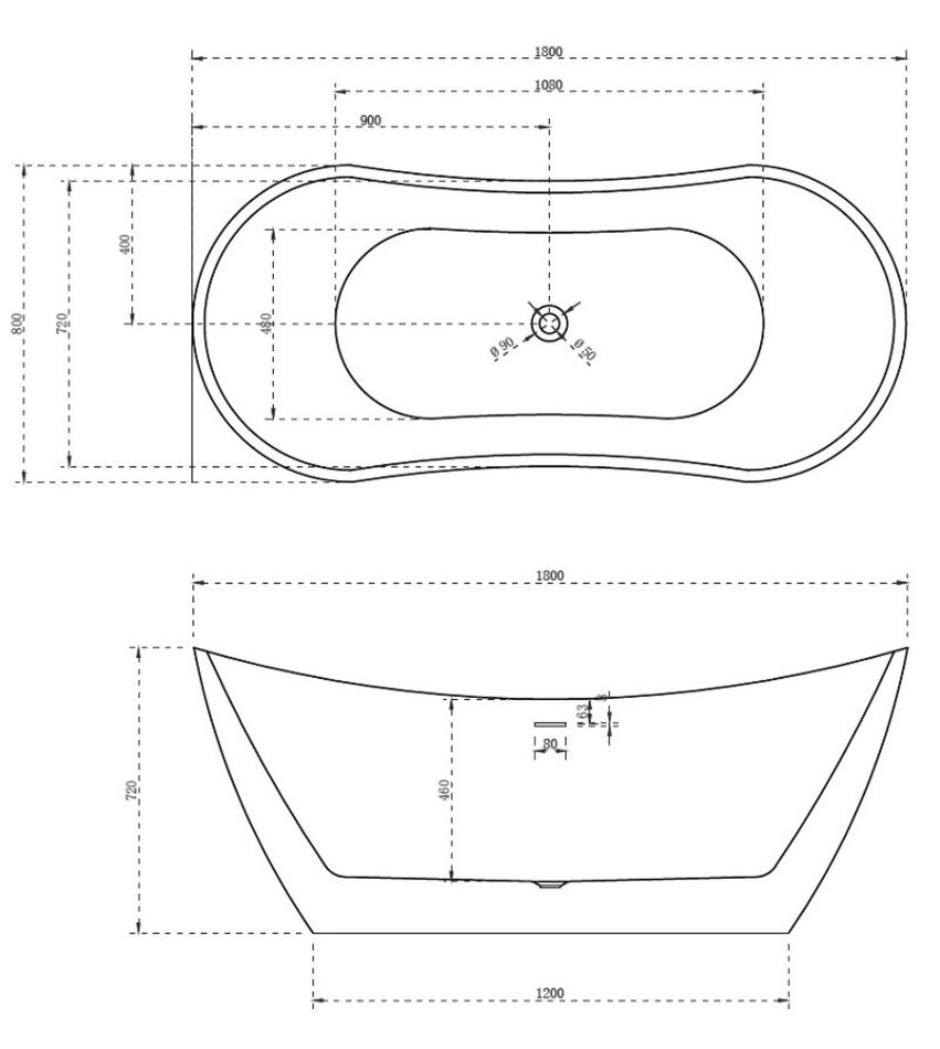 Ванна акриловая Abber 180 х 80 x 72 см, отдельностоящая, белая, AB9322