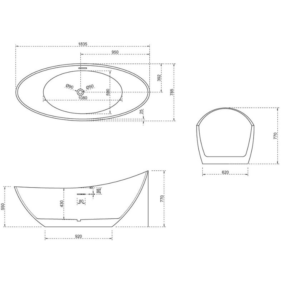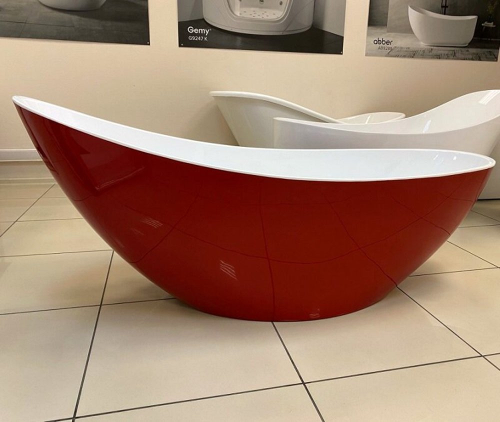 Ванна акриловая Abber 184 х 79 x 77 см, отдельностоящая, цвет белый, внешняя панель красная, AB9233R