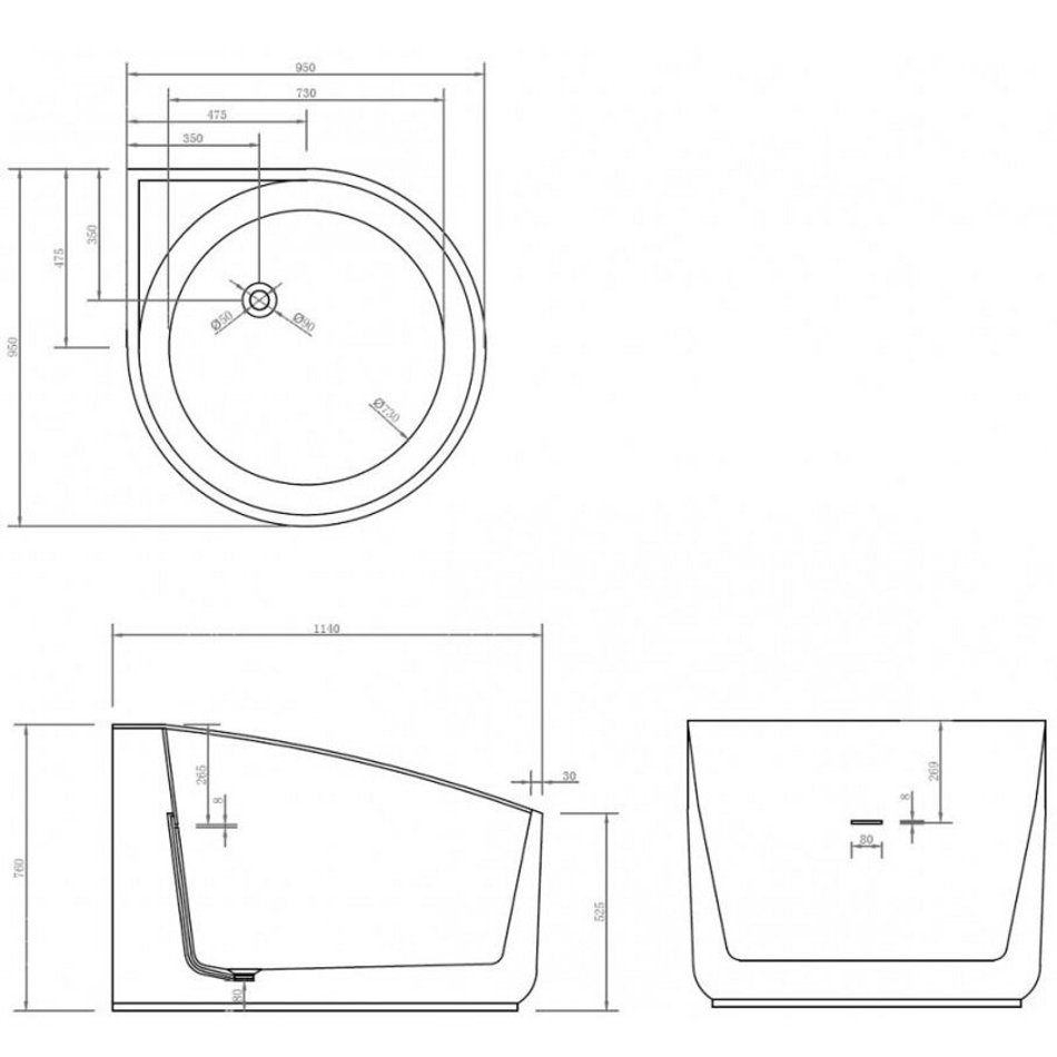 Ванна акриловая Abber 95 х 95 x 76 см, угловая, белая, AB9305