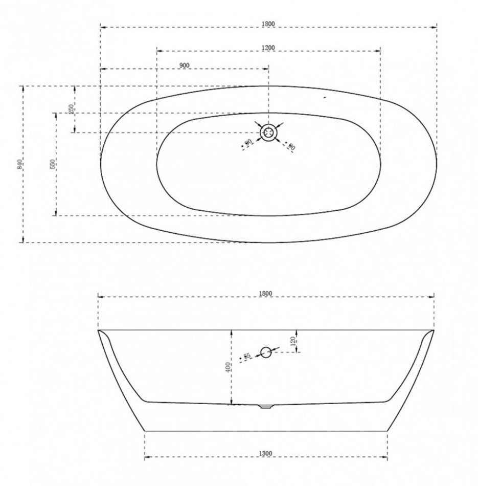 Ванна акриловая Abber AB9205, цвет белый, 180 х 84 х 54 см