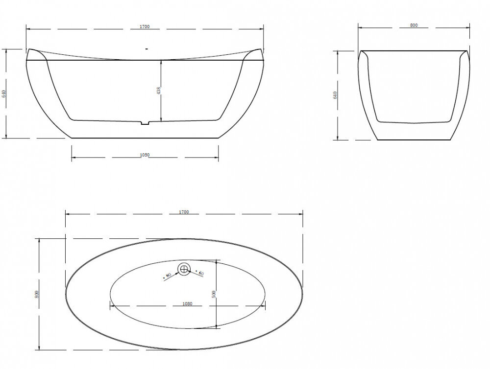 Ванна акриловая Abber AB9236, цвет - белый, 170 x 80 x 64 см