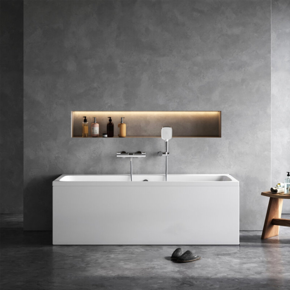 Коллекция Func — это не просто красивый внешний вид но и продуманные детали. Продукты Func создают стильное и комфортабельное пространство для жизни. Подчеркнутый оригинальный дизайн и практичная функциональность от дизайн-бюро DanelonMeroni (Великобритания / Италия). Широкий борт с одной стороны ванны добавляет дополнительное пространство для хранения. Теперь даже самое небольшое помещение может быть использовано оптимальным образом. Характерный дизайн: сочетание широкого борта с одной стороны с ультра-тонким бортом с другой стороны создает неповторимую квинтэссенцию стиля. А декоративная заглушка слива повторяющая форму самой ванны станет яркой деталью в интерьере. Разработанный совместно с ведущими терапевтами угол наклона спинки 125° обеспечивает оптимальную поддержку спины и максимальное погружение в воду. За счет низкой теплопроводности и теплоемкости акрила ванна поддерживает температуру набранной воды значительно дольше.
